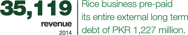 EXIMP’s revenue increased by 7% to PKR 35,119 million in 2014 from PKR 32,853 million while its consolidated loss for 2014 stood at PKR 2,961 million as compared to a profit after tax of PKR 60 million in 2013. The profitability of fertilizer trading business was more than offset by the rice business losses.