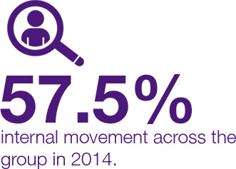 We have leveraged internal talent across the group facilitating internal growth and career moves for employees. This high focus on engagement has resulted in us exceeding our target set in 2013 so that that internal movement across the group in 2014 has increased to 57.5%.