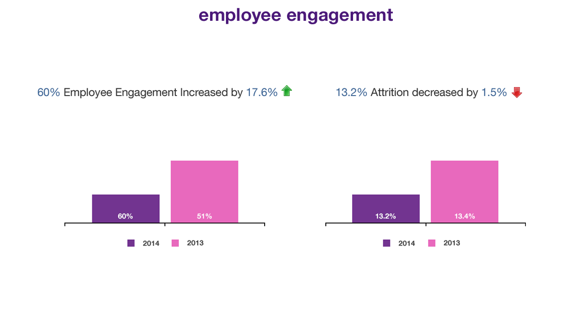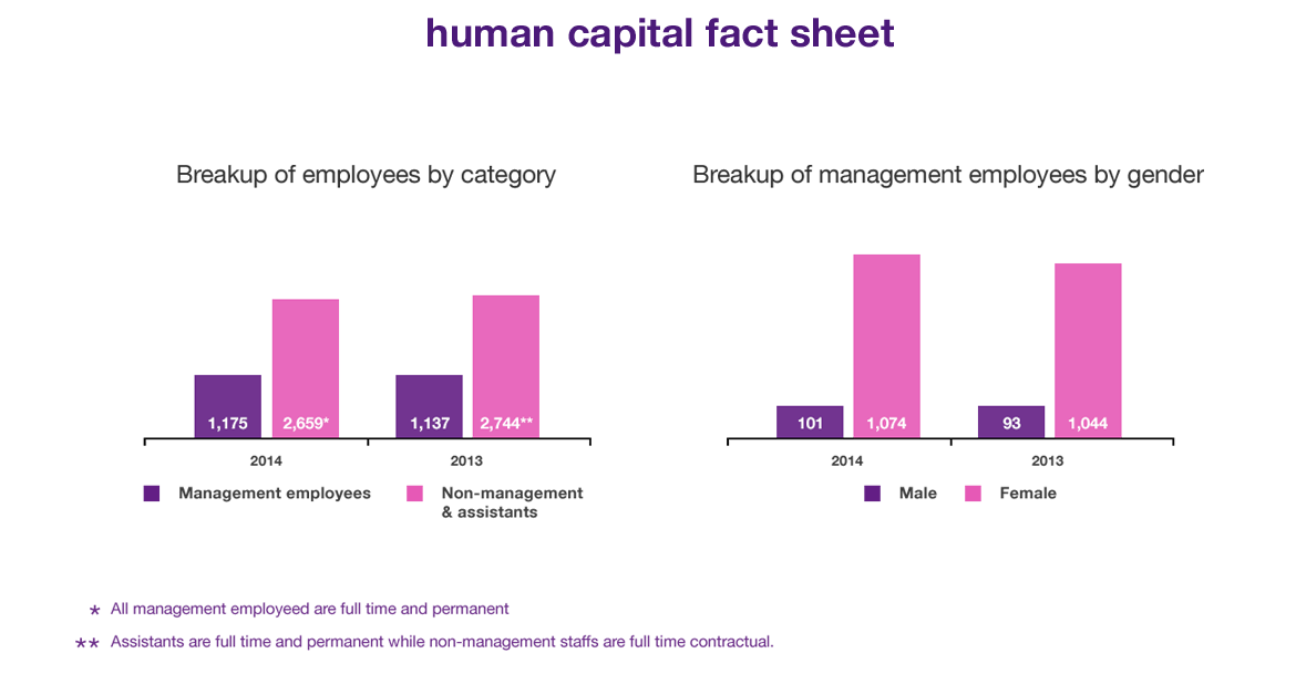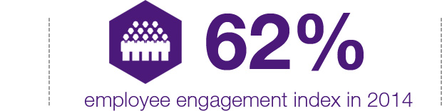 To ensure that we remain the most sought after employer amongst a varied group of individuals, we continued our focus on implementing a holistic strategy for employee engagement and organizational development. Earlier we had identified the high impact areas and through the year we demonstrated a group-wide emphasis on these key determinants which included areas such as performance management, career growth, work life balance and training & development. In addition we recalibrated our engagement strategy through frequent focus groups that were conducted during the year; consequently, exceeding our target set in 2013 and achieving a stellar engagement index of 62% on a consolidated group-wide basis.