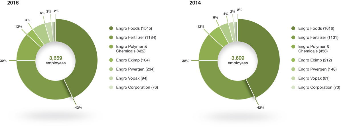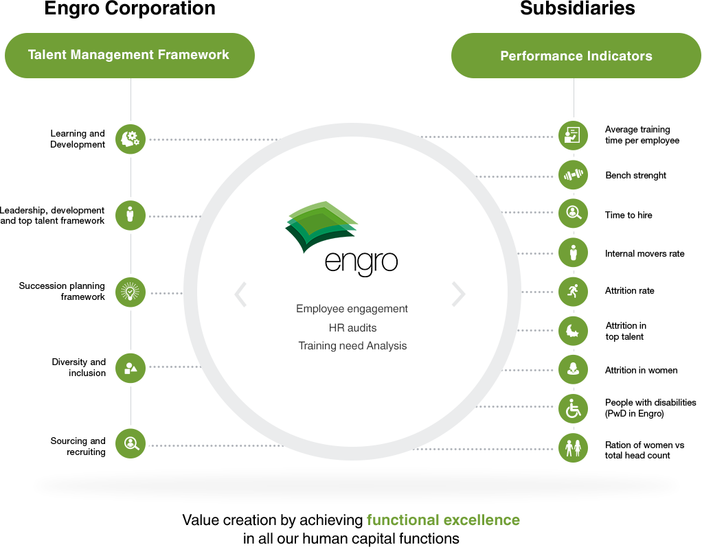 Our ability to persistently generate shareholder value is directly tied to adding value to our most important asset, our people. At Engro, there exists an unceasing commitment to follow the guidelines of our ‘Talent Management Strategy 2014’. This strategy defined our direction towards developing and propagating an enabling organizational culture via focus on improving diversity and inclusion, employee engagement, our leadership pipeline, inculcating loyalty and instilling a sense of pride within our employees.
