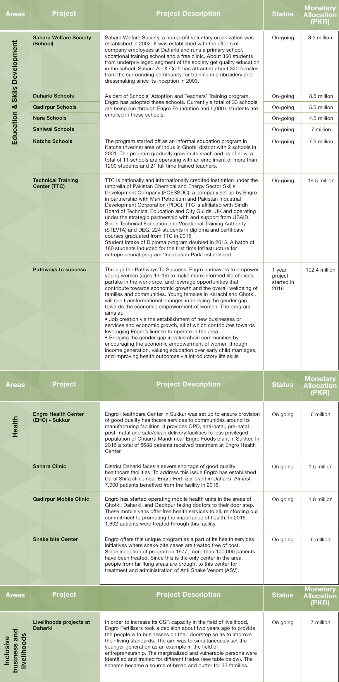 during the year we started our investment in business inclusive model with the value chain mapping of engro polymer and engro fertlizer. the purpose of this study was to identify the opportunities for community development projects where we can achieve maximum socio economic impact. our plan is to extend this study in other businesses as well and devise a comprehensive strategy for business inclusiveness.