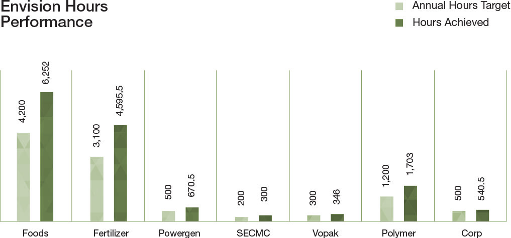 envision (engro volunteers in service of the nation) is a platform providing opportunity for the engro employees to make positive impact in the society through their competencies and skills. we fully support and encourage our employees to volunteer their work time for social causes. envision operates under the designated council which is further structured into seven chapters of engro employees located in sahiwal, sukkur, muridke, dharki, port qasim, karachi and lahore. this platform also provides our employees with an opportunity of getting exposure to new environments and experiences, leading to innovation, creativity and leadership whilst fostering team building and cross-company collaboration.