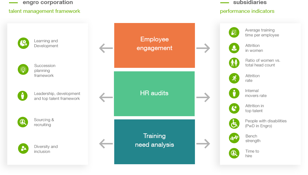 Our hallmark of continued sustenance and success is mapped through continuous value addition to our most important asset, our employees, “Our People”. At Engro, there exists an unceasing commitment to follow the guidelines of our ‘Talent Management Strategy 2014’. A strategy that defines our direction towards developing and propagating an enabling organizational culture that improves diversity and inclusion, employee engagement, our leadership pipeline, inculcates loyalty and instils a sense of pride within our employees.